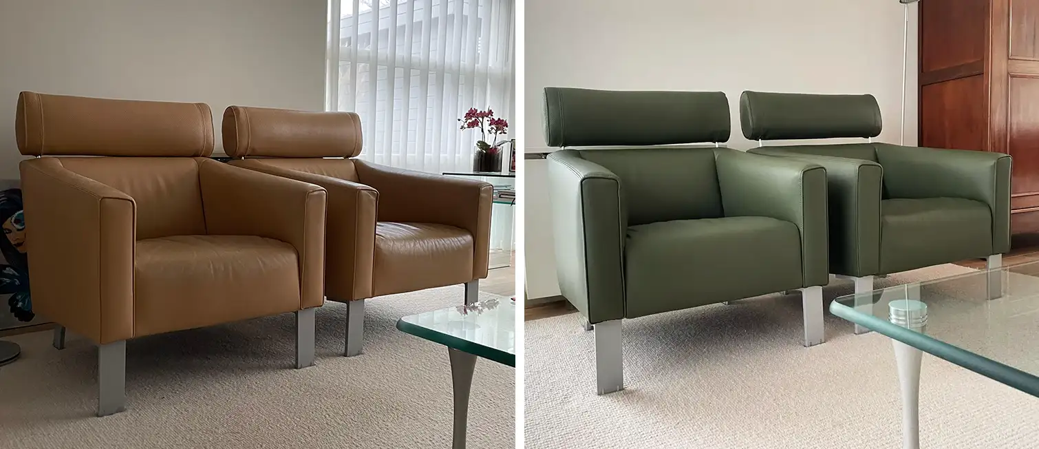 Leren meubels renoveren door verven of spuiten in een nieuwe of originele kleur